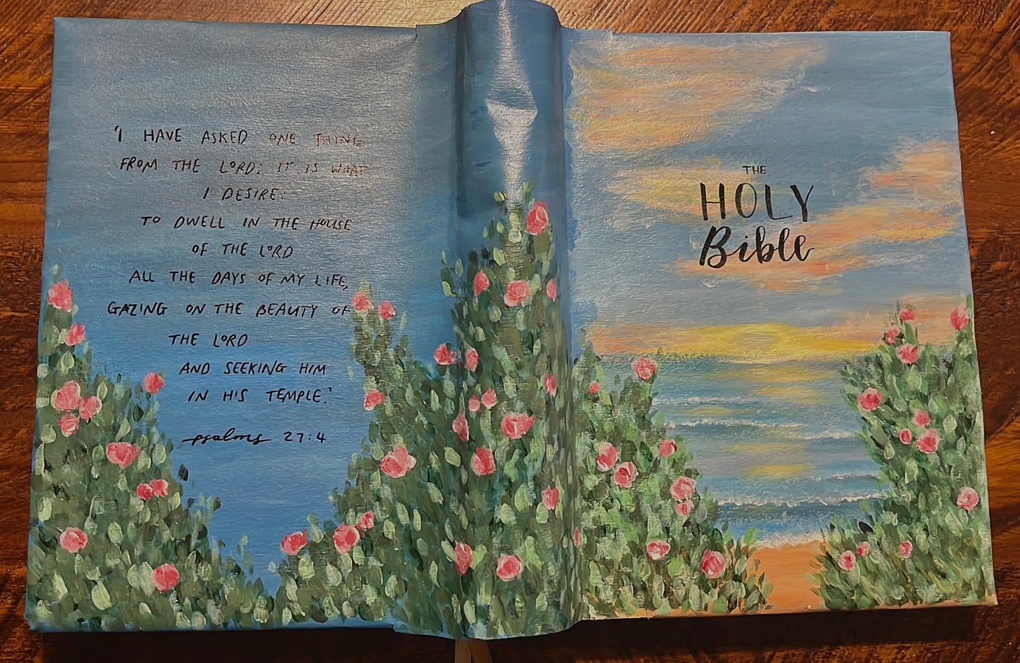 And I’ve discovered that I really enjoy painting! I recently painted my Bible cover with a landscape of the sunrise over the sea (my happy place, where I feel closest to God). I so enjoyed the whole experience: the mixing of colours, the precision yet freedom of it, the sheer joy from the whole piece coming together.
